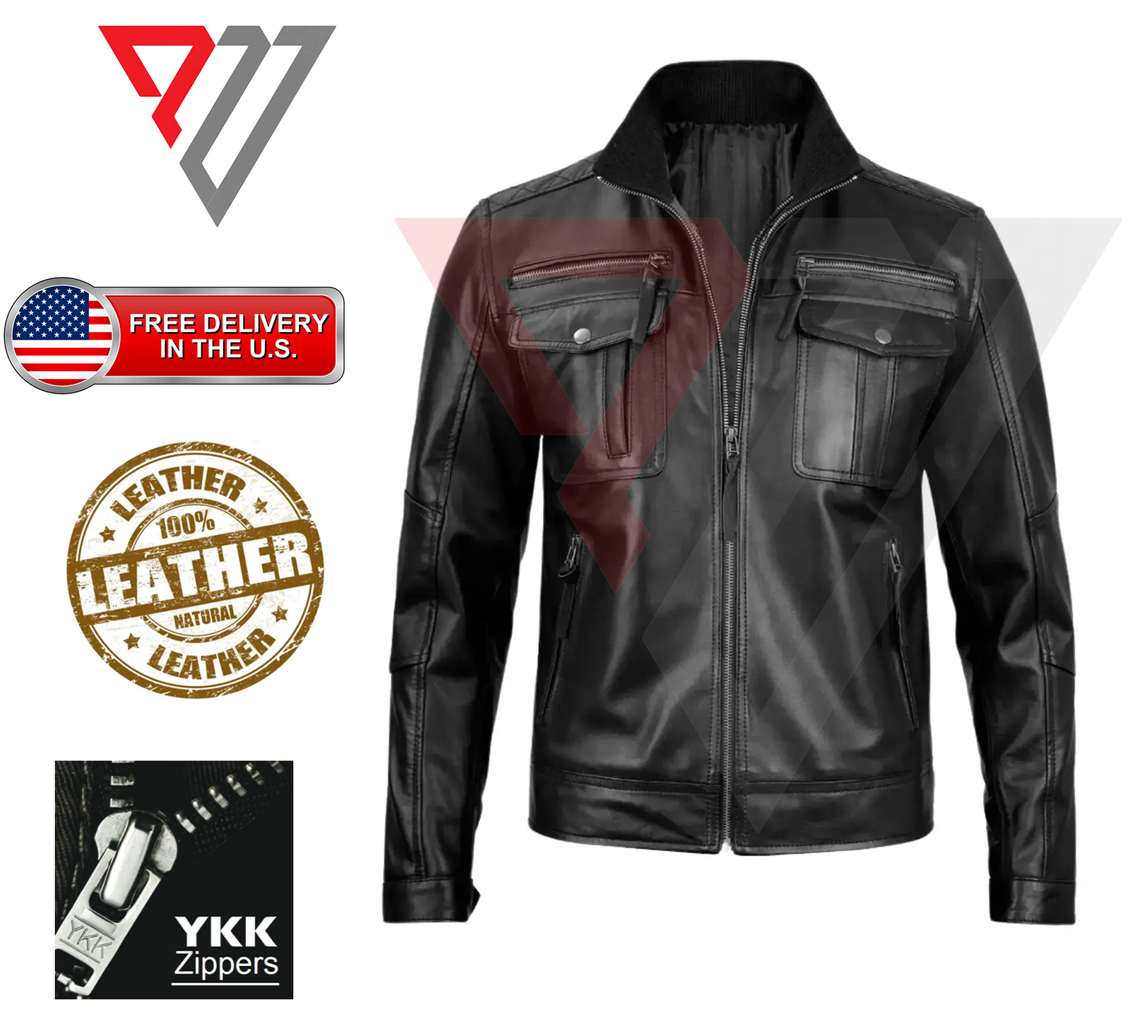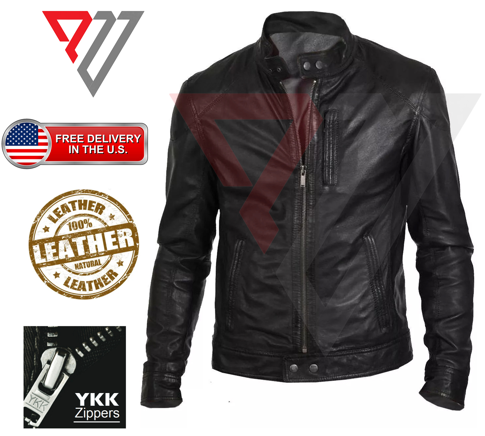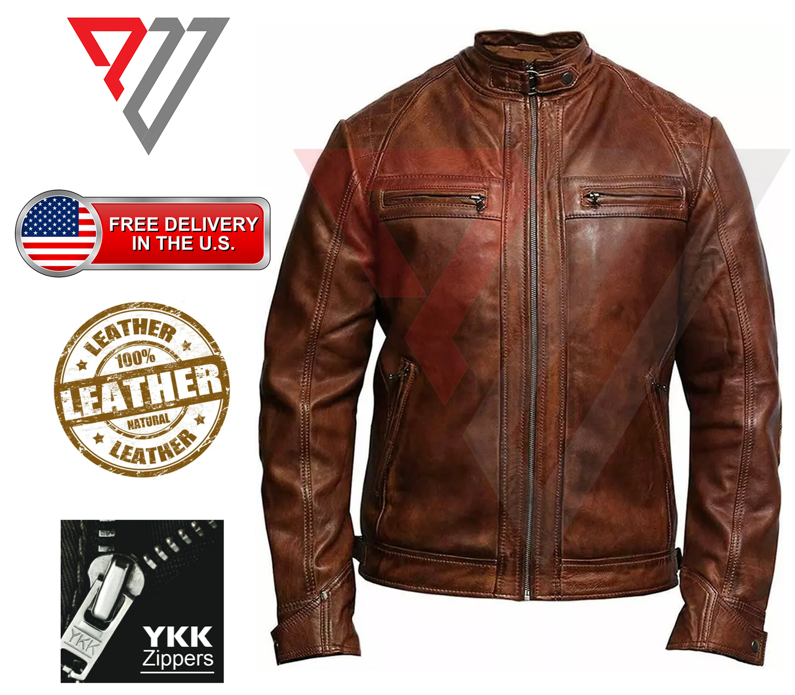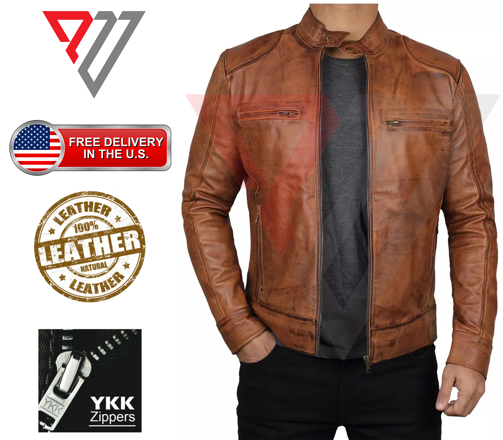 Men's Real Lambskin Soft Brown Leather Classic Slim Fit Motorcycle Biker Jackets PWV-LJ15-BR